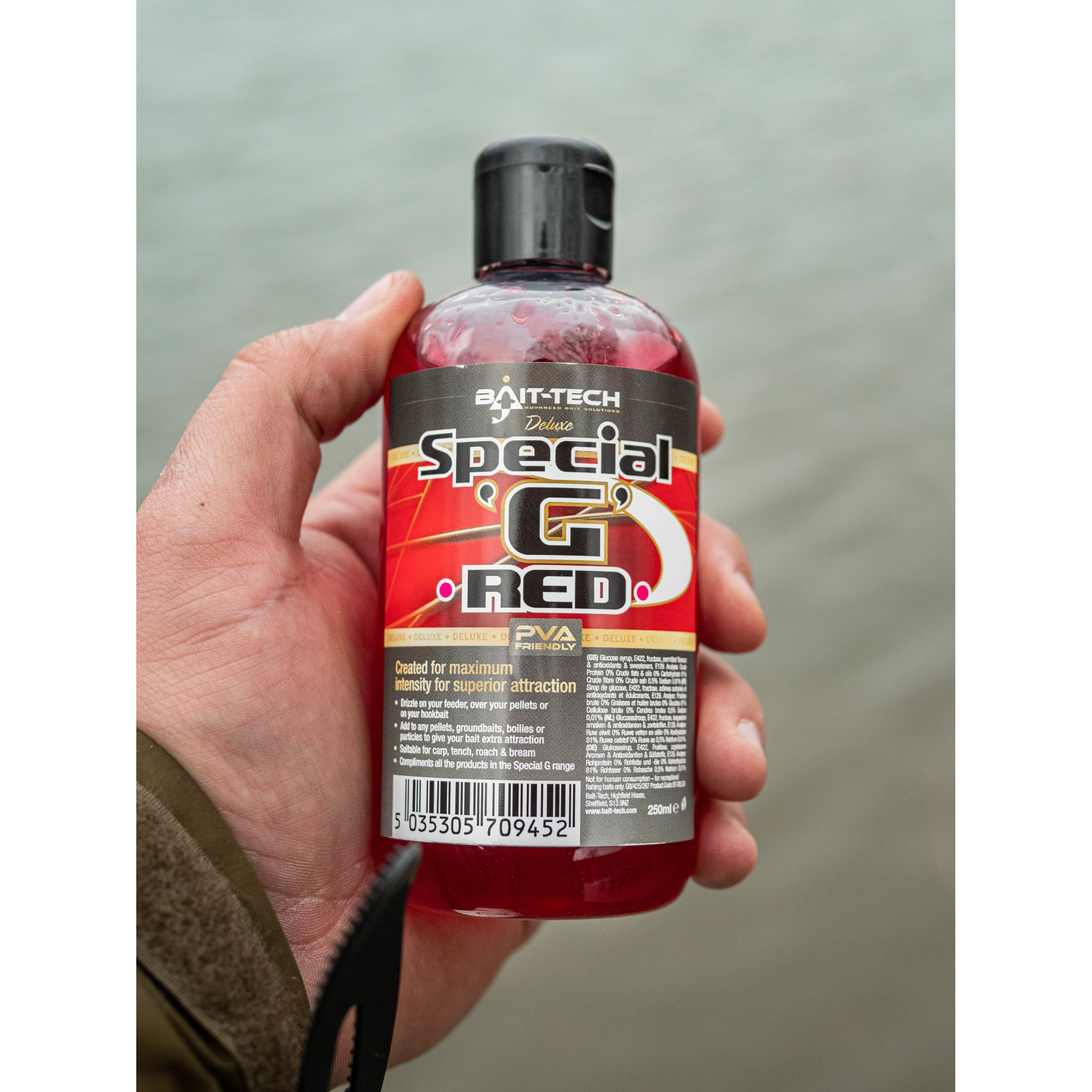 Řada tekutých posilovačů od Bait-Tech v různých příchutích a pro různé použití. Je vhodná do method mixů, spodových mixů a pro lehké dipování pelet i boilies. Možnost využití je však nekonečná. Pelety, boilie, chléb, Xpands peletky, červi, je možné ji kombinovat, jak vás napadne. Tento tekutý posilovač je možné použit na všecko a všude. V několika příchutích: - Special G Dark - Special G Green - Special G Red - The Juice - Krill