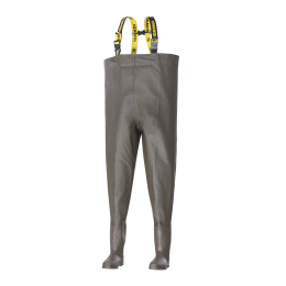 Prémiové broďáky vyrobené z prvotřídního PVC s odolnou polyesterovou podšívkou — navržené tak, aby obstály i v těch nejnáročnějších podmínkách a nabídly maximální životnost. Materiál je měkký, mírně pružný a mimořádně pohodlný, což zajišťuje maximální volnost pohybu. Robustní boty jsou vybaveny protiskluzovou podrážkou a speciálně tvarovanou patou s hlubokými výstupky pro snadné a rychlé vyzouvání. Všechny švy jsou pečlivě zatavené a zajišťují 100% vodotěsnost. Zesílené oblasti na kolenou poskytují dodatečnou ochranu bez objemných vnějších záplat, které by se mohly časem uvolnit. Tyto broďáky spojují funkčnost a komfort — nechybí nastavitelná stahovací šňůrka, vodotěsná vnitřní kapsa s utěsněným zipem a pohodlné kšandy s tkaným logem. Dodávají se v kvalitním přepravním obalu s pevnými popruhy odolnými vůči vlhkosti i nečistotám — připraveny vyrazit kamkoli, kam vás zavede vaše dobrodružství.