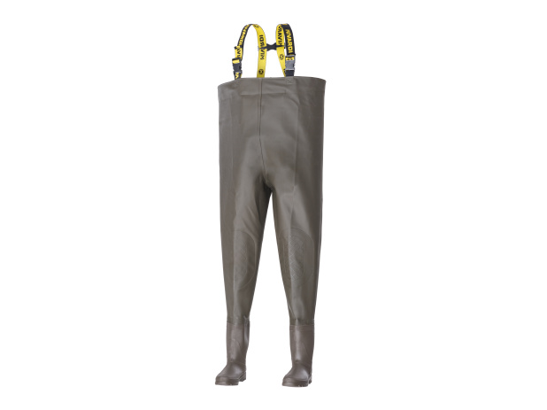 Prémiové broďáky vyrobené z prvotřídního PVC s odolnou polyesterovou podšívkou — navržené tak, aby obstály i v těch nejnáročnějších podmínkách a nabídly maximální životnost. Materiál je měkký, mírně pružný a mimořádně pohodlný, což zajišťuje maximální volnost pohybu. Robustní boty jsou vybaveny protiskluzovou podrážkou a speciálně tvarovanou patou s hlubokými výstupky pro snadné a rychlé vyzouvání. Všechny švy jsou pečlivě zatavené a zajišťují 100% vodotěsnost. Zesílené oblasti na kolenou poskytují dodatečnou ochranu bez objemných vnějších záplat, které by se mohly časem uvolnit. Tyto broďáky spojují funkčnost a komfort — nechybí nastavitelná stahovací šňůrka, vodotěsná vnitřní kapsa s utěsněným zipem a pohodlné kšandy s tkaným logem. Dodávají se v kvalitním přepravním obalu s pevnými popruhy odolnými vůči vlhkosti i nečistotám — připraveny vyrazit kamkoli, kam vás zavede vaše dobrodružství.