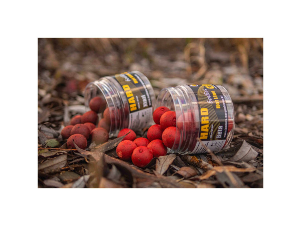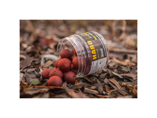 HARD BOILIES jsou extrémně odolné boilies sušené až 72 hodin, což jim zaručuje mimořádnou tvrdost a pomalý rozpad i v teplé vodě. Díky své pevnosti efektivně selektují menší ryby a jsou ideální volbou pro cílený lov velkých kaprů. Perfektní pro dlouhodobé výpravy nebo tam, kde je vyžadována maximální výdrž nástrahy. Celá řada je postavená na velmi kvalitních surovinách: Robin Red, Krillová a Tuňáková moučka, GLM extrakt, sardinkový protein, španělský pepř a konopí. Hlavní tekutou složkou je výtažek z chilli. Průměr boilies: 24mm Balení: 300ml Odkaz na video: http://www.youtube.com/watch?v=su8jNlvAyro