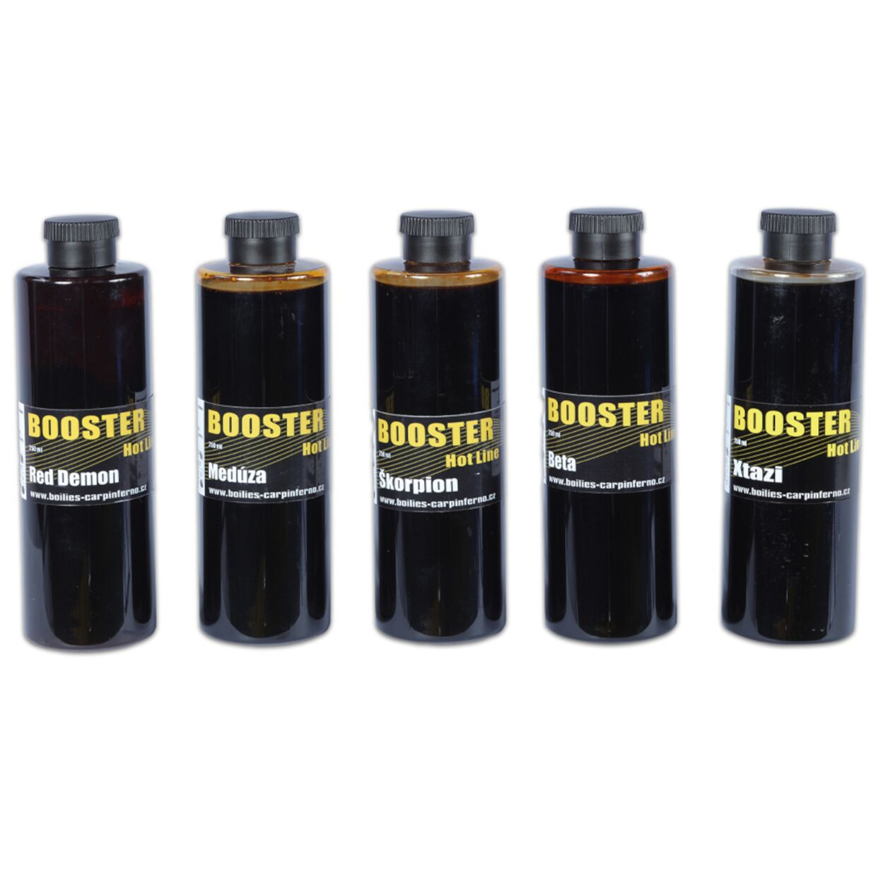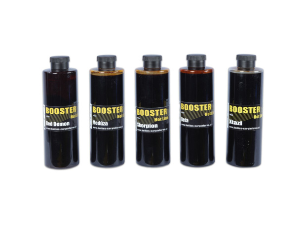 Boostery jsme připravili v pěti příchutích pro celou řadu HOT line. Vysoce efektivní mix několika tekutých potrav,aminokyselin a chuťových atraktorů, které neodolatelně zatraktivní vaši nastrahu i návnadu. Naše boostery je možno použít na boilies, pelety, boilies mixy, krmítkové směsi, method mixy i extrudované nástrahy. Nerozpouští PVA materiály.