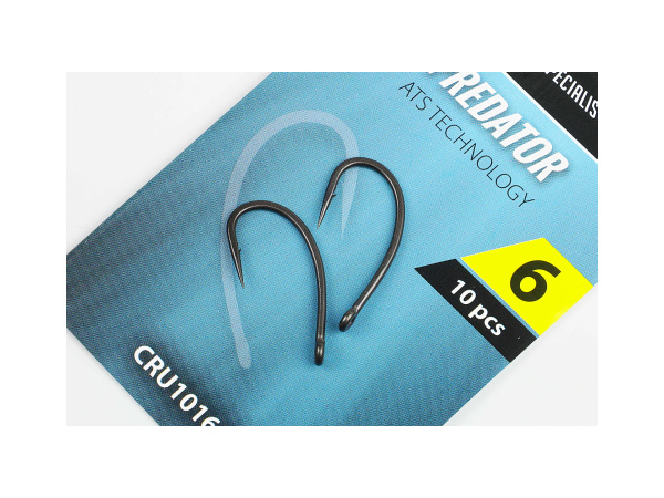 Náš testérský a konzultační team na něm tvrdě pracoval dva roky a dnes můžeme z jistotu říct, že se mu podařilo vyvinout jeden z nejlepších háčků na lov kaprovitých ryb. Jedná se o již známý tvar háčku typu Kurve Shank, avšak ten náš je přizpůsobený přesným požadavkům těch nejzkušenějších lovců kaprů napříč celou Evropou. Predator má správně nadesignované raménko s rovným očkem a prodlouženým ostřím, na kterém je mikro protihrot. Prodloužené ostří umožňuje lepší průnik háčku do kapří tlamky a mikroprotihrot minimalizuje její poškození. Predator, je jako ostatní druhy háčku Carp´R´Us, vyroben tím nejlepším a nejrespektovanějším výrobcem háčků v Japonsku za použití té nejkvalitnější japonské oceli. Háčky prochází patentovaným procesem temperace, která jim dodává perfektní pevnost a dlouhodobou ostrost. Matná povrchová úprava ATS bez použití teflonu zaručuje dlouhodobou ochranu proti korozi a nesnižuje pevnost háčků, jako je tomu u klasických teflonových variant. Technické parametry Velikost: 4, 6 nebo 8 (dle zvolené varianty) Balení: 10 ks