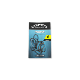 Náš testérský a konzultační team na něm tvrdě pracoval dva roky a dnes můžeme z jistotu říct, že se mu podařilo vyvinout jeden z nejlepších háčků na lov kaprovitých ryb. Jedná se o již známý tvar háčku typu Kurve Shank, avšak ten náš je přizpůsobený přesným požadavkům těch nejzkušenějších lovců kaprů napříč celou Evropou. Predator má správně nadesignované raménko s rovným očkem a prodlouženým ostřím, na kterém je mikro protihrot. Prodloužené ostří umožňuje lepší průnik háčku do kapří tlamky a mikroprotihrot minimalizuje její poškození. Predator, je jako ostatní druhy háčku Carp´R´Us, vyroben tím nejlepším a nejrespektovanějším výrobcem háčků v Japonsku za použití té nejkvalitnější japonské oceli. Háčky prochází patentovaným procesem temperace, která jim dodává perfektní pevnost a dlouhodobou ostrost. Matná povrchová úprava ATS bez použití teflonu zaručuje dlouhodobou ochranu proti korozi a nesnižuje pevnost háčků, jako je tomu u klasických teflonových variant. Technické parametry Velikost: 4, 6 nebo 8 (dle zvolené varianty) Balení: 10 ks