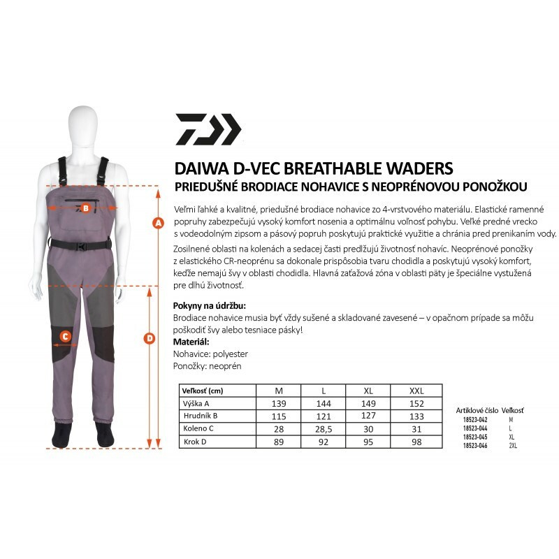 DAIWA D-Vec Prodyšné brodící kalhoty – lehké a prodyšné brodící kalhoty které nabízejí pohodlí odolnost a volnost pohybu při lovu v řece nebo jezeře.