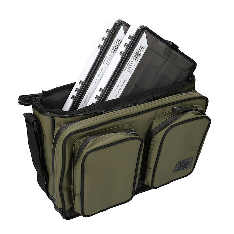 DAIWA D-Vec WP-200 Tackle Box Bag je lehká a extrémně odolná taška určená pro bezpečné skladování a přepravu krabiček s nástrahami a drobným příslušenstvím. Vnější materiál z PVC v kombinaci s voděodolnými zipy efektivně zabraňují vniknutí vody dovnitř tašky. Pogumované dno navíc brání pronikání vody zdola.