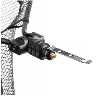 Manipulace jednou rukou. Po odjištění zámku můžeme hlavu podběráku lehce sklopit, nebo zacvaknout do lineární pozice. Předimenzovaný kovový střed, který drží pevně hlavu podběráku. Spona, která je na podběráku slouží pro zaklipování na opasek rybáře, a tak se můžeme s podběrákem brodit a mít ho vždy po ruce.