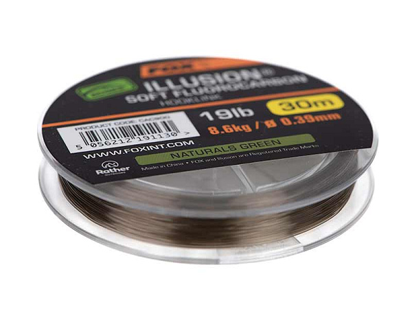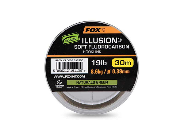 Fox háčky Edges Illusion Soft Fluorocarbon Hooklink 19lb 8.6kg (0.39mm) x 30m - Naturals Green