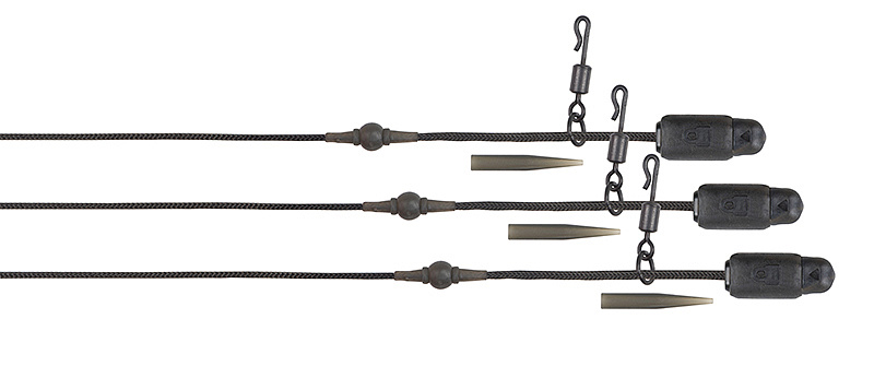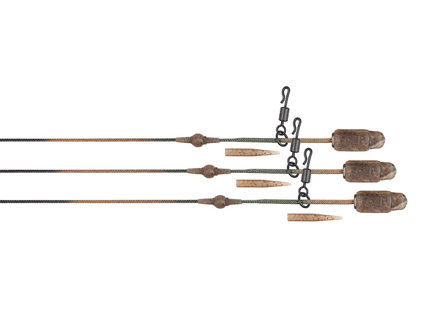 - Návazce Leadcore, Copper Core a Submerge kompletní s korálky Leader Beads, obratlíky Heli Swivels a patentovaným klipem Fox Heli-Clip.