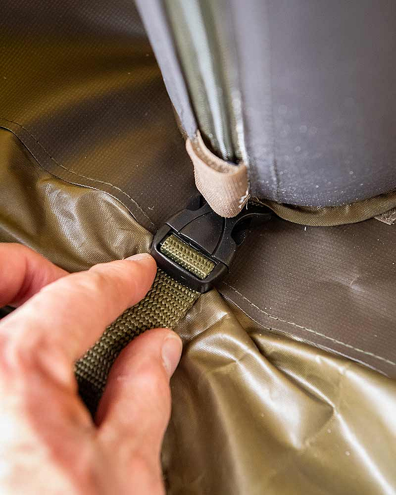 - Zadní panel s průchodem na zip lze použít k prodloužení bivaku/brolly.