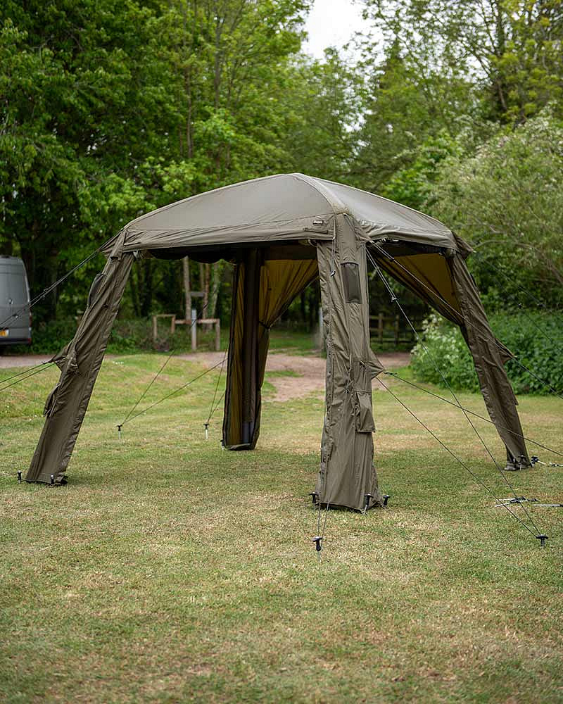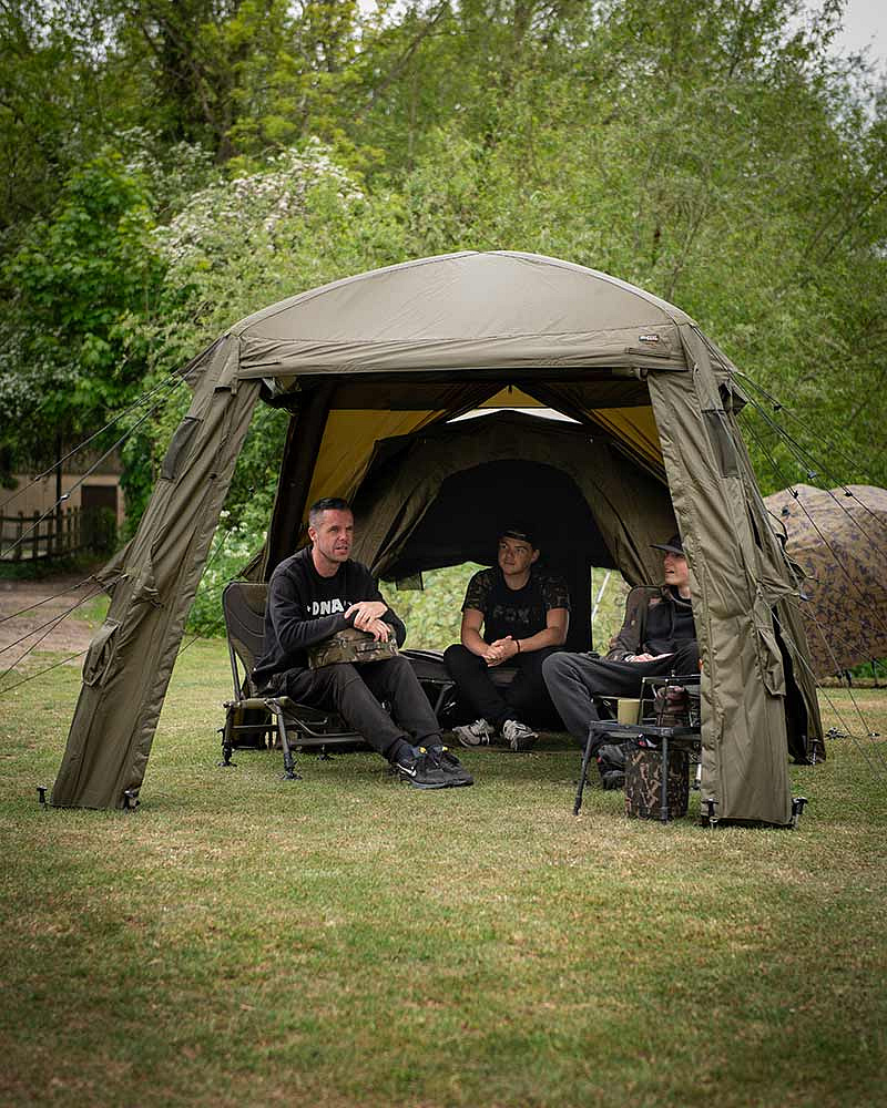 Společenský přístřešek s nafukovacím rámem navrženým tak, aby vydržel mnohem větší zátěž ve srovnání s tradiční konstrukcí. Díky systému nafukovacích trubic jej snadno a rychle nafouknete a kolíky zajistíte do země. Přístřešek je vyrobený z velmi odolné polyesterové tkaniny Fox Khaki s vodním sloupcem 8 000 mm, která poskytuje optimální ochranu před sluncem a teplem díky vnitřní vrstvě „Black Out“ na střešním panelu. Přístřešek je velmi všestranný je vybavený odnímatelnými dveřmi a bočními panely poskytuje různé možnosti větracích oken, zadní vchod lze využít k prodloužení bivaku nebo deštníku. Součástí balení je pumpa s dvojitým pístem a promyšlený systém kotevních šňůr. Tento přístřešek je navržen tak, aby byl spolehlivý v jakémkoli počasí.