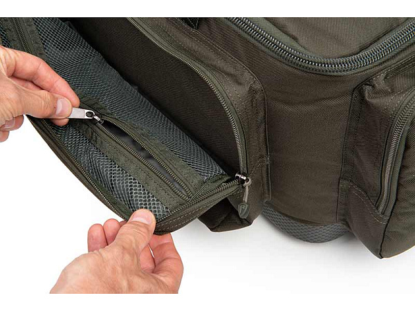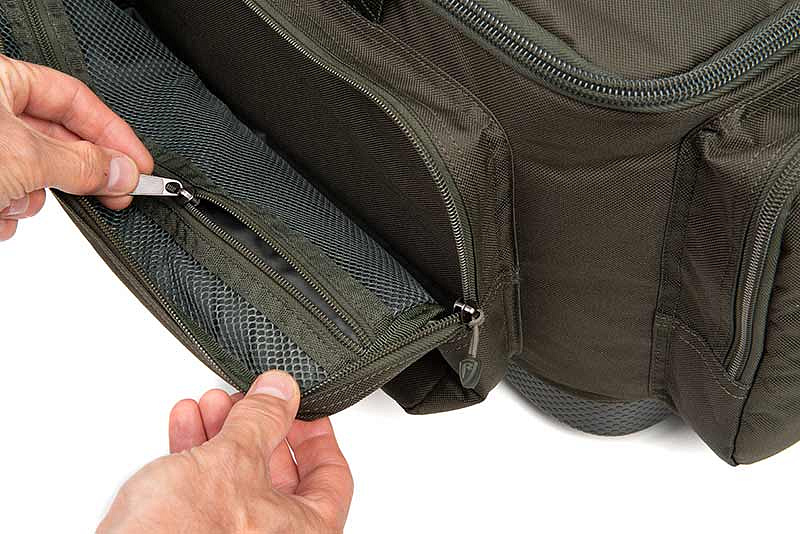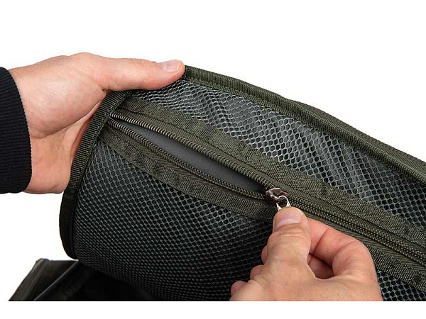 - Obsazené boční kapsy: dvě boční kapsy obsahují medium organizéry, nebo se do nich pohodlně uloží organizér Fox Edges Medium Box.