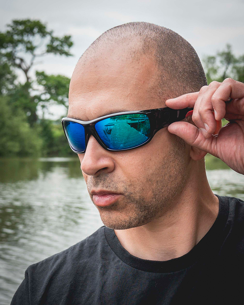 Fox Rage Shield Wraps Brown Lense Mirror Blue