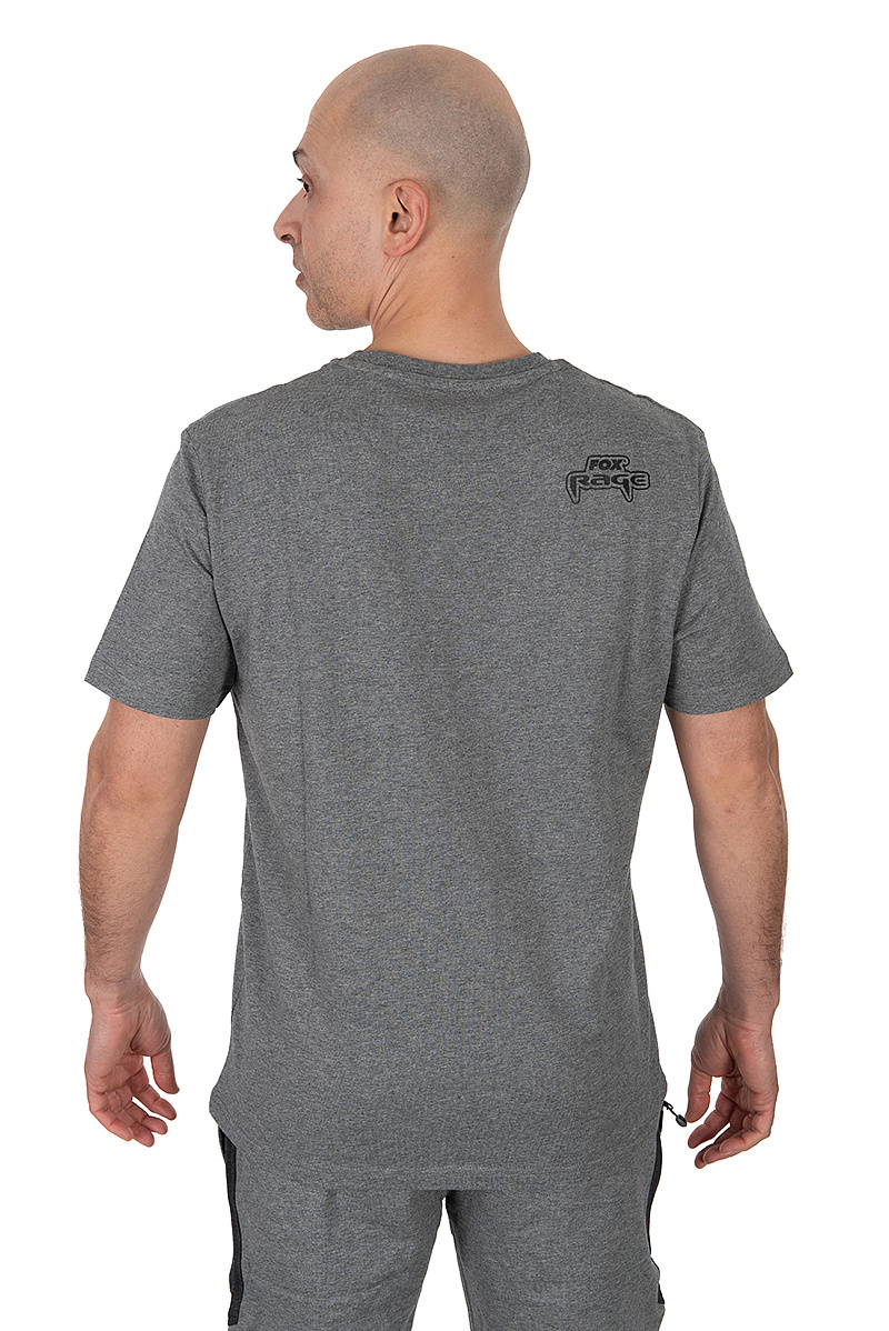 - Moderní volný střih: trika Fox Rage Voyager vyrobená ze stylové šedé melírované látky s logem Fox Rage a štítem s „R".