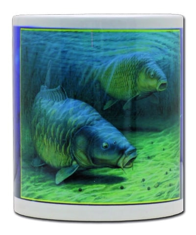 Krásný keramický hrnek s kaprovým motivem, ideální jako dárek pro nadšené rybáře.