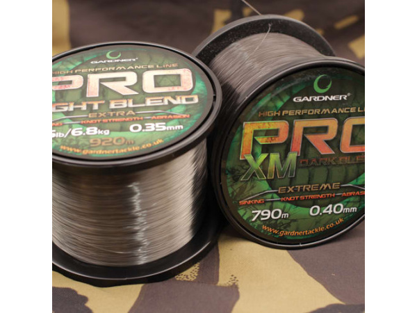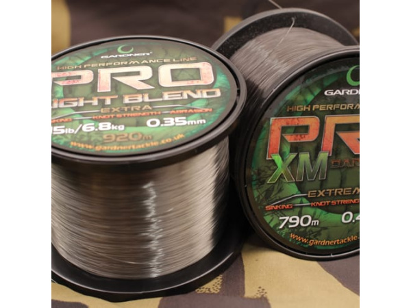 Firma Gardner čerpá z dlouholetých zkušeností ve výrobě a distribuci těch nejlepších vlasců pro lov kaprů a způsob lovu plavaná či feeder. Až se jim podařilo vyvinout exkluzivní sérii vlasců „Pro Light Blend“ a „Pro Dark Blend“. Tyto vlasce nejvyšší kvality byly vyrobeny, aby nabídly nekompromisní výkon a pevnost – přesto se prodávají za příznivou cenu. Jedná se o vlasce, které jsou k nezaplacení, protože většina podobných vlasců se prodává za dvojnásobnou cenu. Od té doby co jsme je dali do prodeje, máme mnoho odpovědí od různých rybářů…veskrze pozitivních! Tabulka: 10 liber (4,5 kg) 0,28mm 1470m XPC10G / L 12 liber (5,4 kg), 0,30mm 1320m XPC12G / l 15 liber (6,8 kg) 0,35mm 920m XPC15G / L XM 20 liber + (9,1 kg +) 0,40mm 790m XPXMG / L