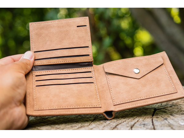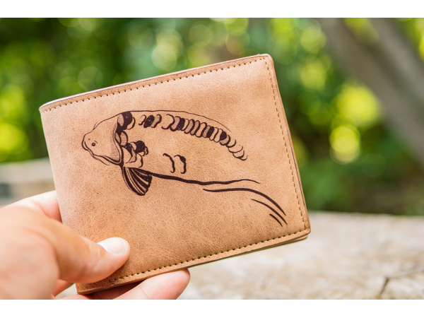Kvalitně zpracované pánské peněženky, které mají náš originální motiv, který potěší každého rybáře. Peněženky jsou vyrobeny z kvalitní syntetické kůže a jsou velmi příjemné na dotyk. Členění peněženky: - 5 přihrádek na karty - 1 průhledná přihrádka na fotky nebo doklady - 2 přepážky na bankovky - 1 velký mincovník - Rozměry: 12 x 9,5 x 3 cm - Materiál: syntetická kůže - Barva: světle hnědá