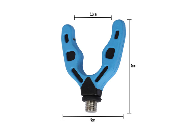 Zadní rohatinka, která je určena k držení prutu a je vyrobena z vysoce odolného plastu s měkčeným povrchem. Díky svému tvaru je rohatinka vhodná na různé průměry rukojetí. Doporučujeme na feederové, pickerové a plavačkové pruty. Na závitové části se nachází gumová podložka, která zamezuje otáčení držáku. Šířka: 5 cm Výška: 7 cm Hmotnost: 23 g Odkaz na video: http://www.youtube.com/watch?v=7EbWoStApF4