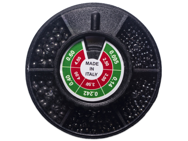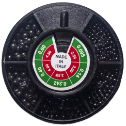 Kvalitní a měkké dovažovací bročky, které jsou vyrobeny v Itálii. Jsou dodávány v praktické krabičce, kde je mix bročků různých velikostí. Hmotnosti bročku: 0,095, 0,14, 0,242, 0,40 a 0,60g, Velikosti bročku: 2,50, 3,00, 3,50, 4,00 a 4,50mm Hmotnost balení: 94g
