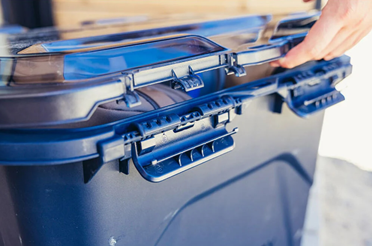 Camp Box 50 je voděodolný a prachotěsný s atestem IP65, průhledné víko z polykarbonátu pro snadnou orientaci a přehled. Klipy umožnují otevřít box z obou stran, takže není limit v přístupu k materiálu. Profilované úchopy pro snadnou manipulaci, tvarované dno pro maximální mechanickou odolnost a snadné stohování více boxů na sebe. Polykarbonátové víko je vysoce mechanicky odolné a ochrání cenné vybavení, spodní část boxu je vyrobena z 50% z recyklovaného polypropylenu. Ke Gear boxu lze dokoupit i organizeri Alpaca Gear Pod 5 a 10l.