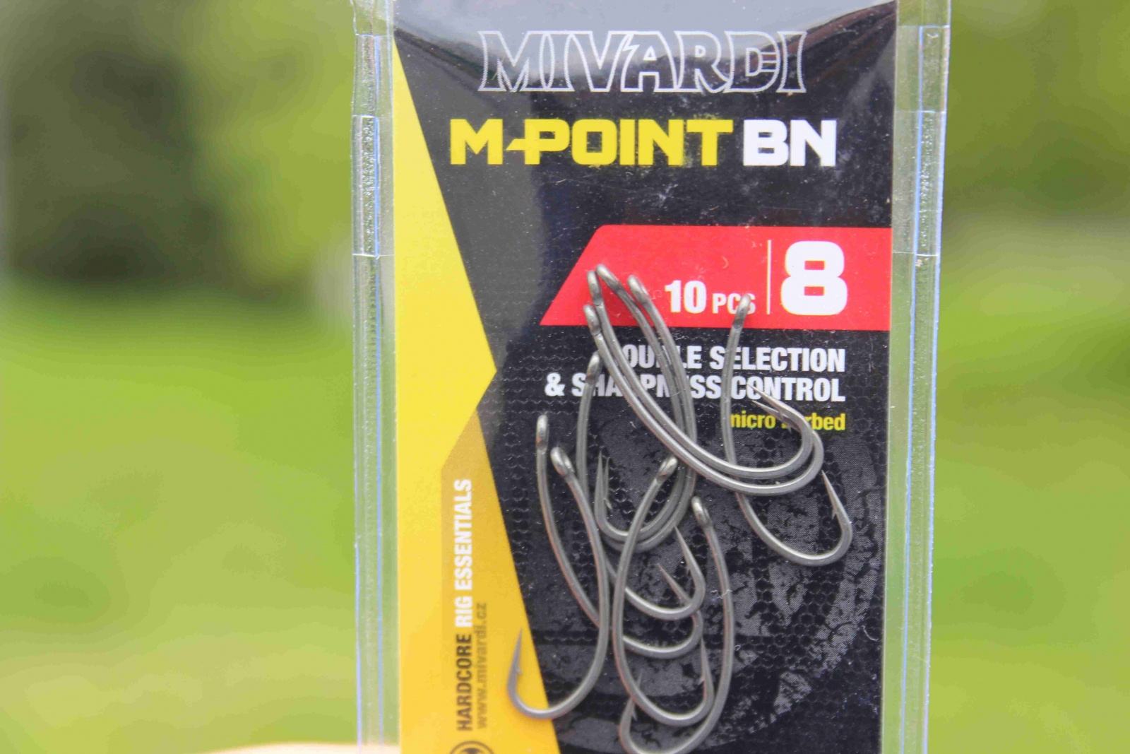 Dokonale ostrý a chytlavý háček z poměrně tenkého, ale pevného drátu. Jeho tvar zajišťuje rychlé stočení a zaseknutí do spodního pysku i při opatrném nasátí. Mimořádné uspěšnosti dosahuje při montáži s kroužkem na vlasu.