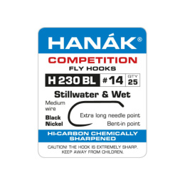 Muškařský háček Hanák H230BL je zesílené provedení modelu velmi oblíbeného muškařského háčku Hanák H130BL s širokým obloučkem a mírně přihnutým hrotem dovnitř. Tento model háčku je také s oblibou používán na vázání suchých mušek při lovu trofejních pstruhů.