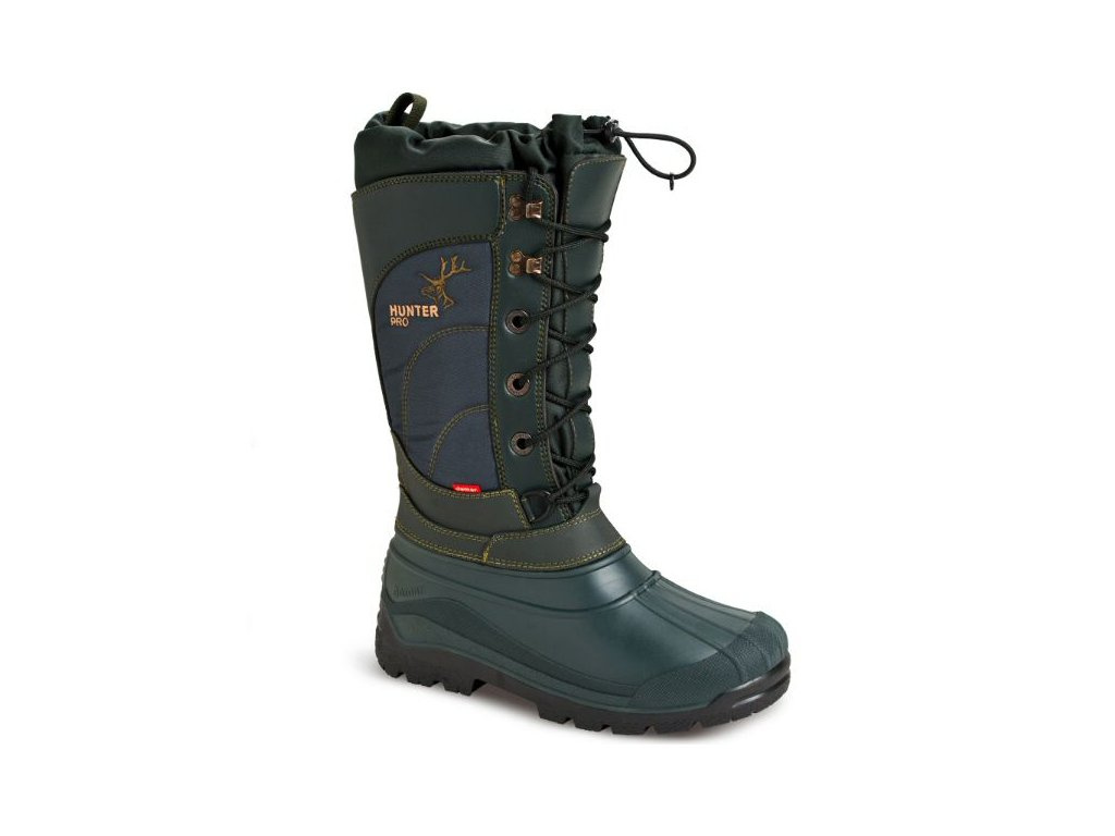 Pánská zimní obuv HUNTER PRO je ideálním řešením pro chladné období pro všechny milovníky přírody. Vysoce komfortní zateplené boty vyrobené z kvalitních materiálů, odolných velmi nízkým teplotám až -35°C. Jsou lehké, pohodlné, vhodné pro pobyt v přírodě i v náročných podmínkách, blátě a sněhu. Nepromokavá spodní část je vyrobena z termokaučuku, vrchní díl z mrazuvzdorného nylonu. Možnost zatažení svršku. Vyjímatelné zateplení z pravé ovčí vlny.