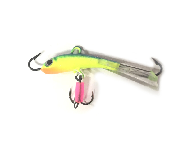 Vertikání nástraha, která je velmi účinou při lovu na dirkách. Tato speciální nástraha má s obou stran jednoháček a ještě pod nástrahou trojháček.
