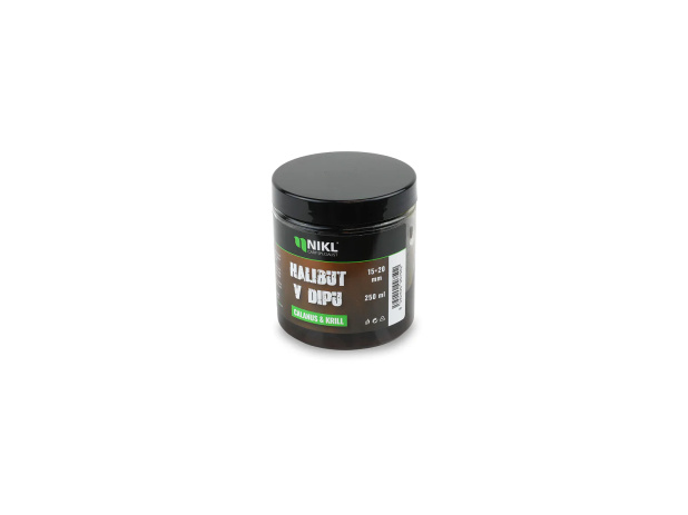 Nikl Black halibut pelety v dipu Calanus & Krill 15+20mm, 250ml