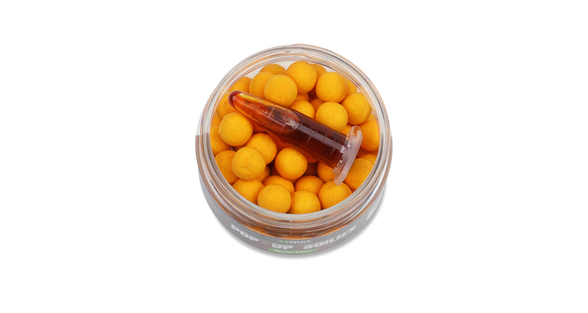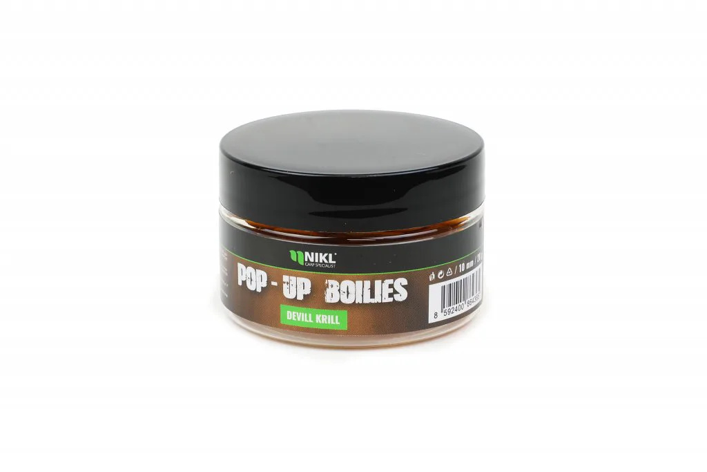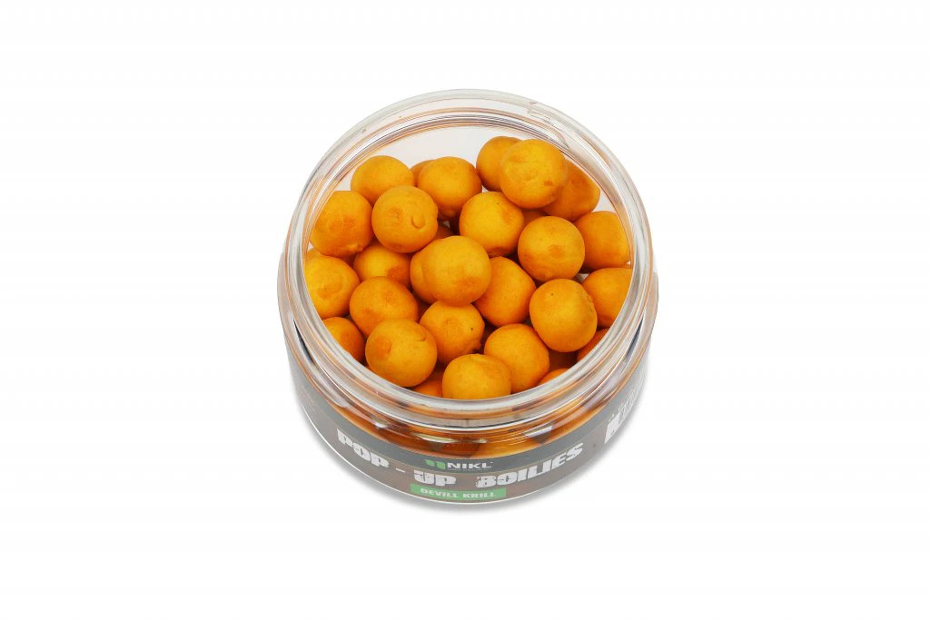 Plovoucí boilies ve žluto-oranžové barvě a příchuti Devill Krill. Základ tvoří náš originální pop-up mix, který skvěle uvolňuje atraktory po dlouhou dobu a navíc má skvělé plovoucí vlastnosti. Vybrat si můžete z průměrů: 10 nebo 14 mm. Nabízíme v příchutích: Candy Sweet, Citrus, Crab, Česnek, Devill Krill, Giga Squid, Gigantica, Chilli & Peach, Kill Krill, Krill Berry, Mango, Pepper, Pineapple Dream, Ripe Banana, Scopex & Squid, Strawberry a Sweet Honey