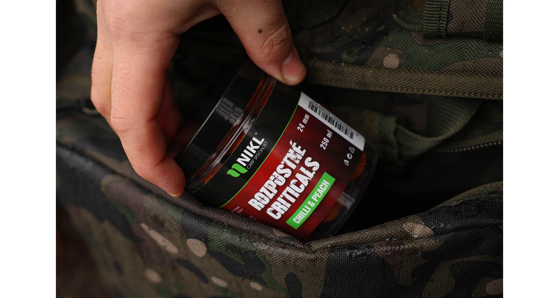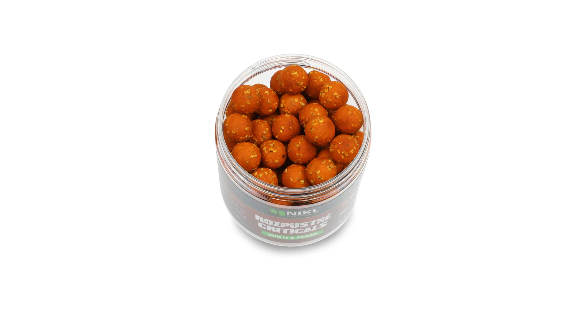 Rozpustné Criticals boilie Chilli & Peach v balení 250 ml. Skvělá nástraha určená výhradně pod háček, navržená pro záběr v co nejkratším čase. Po několika minutách ve vodě se začne pozvolna rozpouštět a uvolňovat esence, atraktory a moučky, což je pro kapry velmi přitažlivé a často způsobí, že při krmení sáhnou po nástraze dříve než po ostatním krmení. Kolem montáže postupně vytváří stabilní potravní signál, který se šíří přirozeně a drží pozornost ryb přímo u nástrahy i v náročných podmínkách nebo na tlakových vodách. Kombinace pikantního chilli a sladké broskve nabízí výrazný, kontrastní profil a díky průběžnému uvolňování složek zůstává prezentace dlouhodobě účinná, když potřebujete rychlou reakci. Kuličky jsou odlehčené drceným korkem, takže jsou kriticky vyvážené a zůstávají lehce nad dnem, což usnadňuje nasátí a často rozhoduje u opatrných kaprů. Ideální pro závodní rybařinu, kdy rozhodují minuty; průměry: 14, 18 a 24 mm, balení: 250 ml.