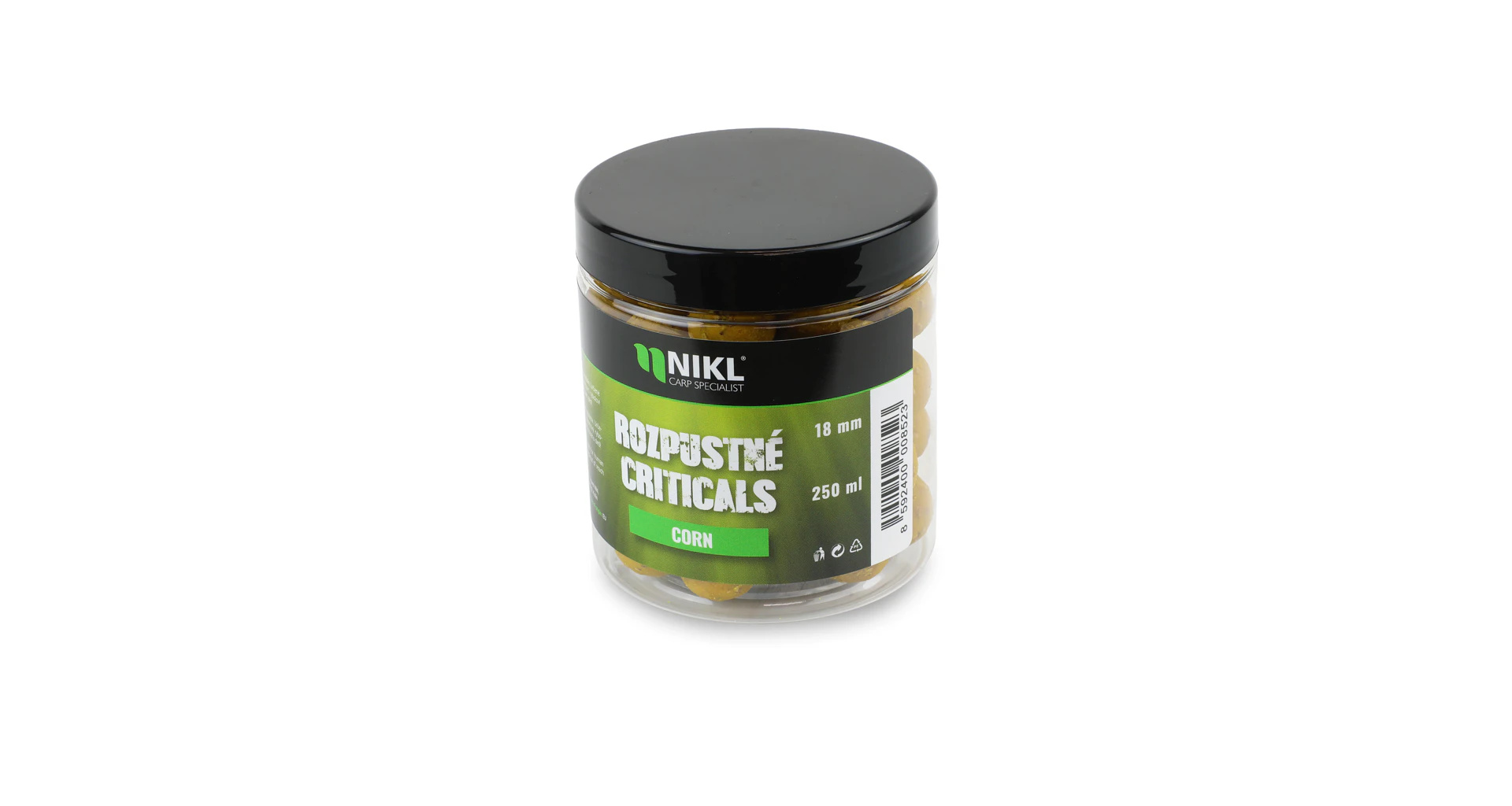 Rozpustné Criticals boilie Corn v balení 250 ml. Skvělá nástraha určená výhradně pod háček, navržená pro záběr v co nejkratším čase. Po několika minutách ve vodě se začne pozvolna rozpouštět a uvolňovat esence, atraktory a moučky, což je pro kapry velmi přitažlivé a často způsobí, že při krmení sáhnou po nástraze dříve než po ostatním krmení. Kolem montáže postupně vytváří stabilní potravní signál, který se šíří přirozeně a drží pozornost ryb přímo u nástrahy i v náročných podmínkách nebo na tlakových vodách. Kukuřičný profil Corn je kaprům důvěrně známý a díky průběžnému uvolňování složek zůstává prezentace dlouhodobě účinná, když potřebujete rychlou reakci. Kuličky jsou odlehčené drceným korkem, takže jsou kriticky vyvážené a zůstávají lehce nad dnem, což usnadňuje nasátí a často rozhoduje u opatrných kaprů. Ideální pro závodní rybařinu, kdy rozhodují minuty; průměry: 14, 18 a 24 mm, balení: 250 ml.