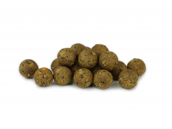 Giga Squid spadá do naší vrcholové řady boilies a pokud přemýšlíte, s čím vyrazit na velké kapry, stává se tahle olihňová pecka jasnou volbou. Boilies obsahuje mix rostlinných, ale hlavně kvalitních rybích a olihňových mouček. Zásadní roli „hrají“ atraktory, mezi které patří hlavně squidové esence, které jsme dlouho kombinovali, aby finální vůně nebyla příliš ostrá, ale ani moc sladká. Vůni a chuť jsme navíc podpořili silicí černého pepře, o kterém víme, že je kapry akceptován snad na všech vodních plochách. Po usilovné práci se nám podařilo vyrobit maximálně chutné a přitažlivé boilies, které budou kapři s důvěrou sbírat po celý rok. Zajímavostí je, že boilies obsahuje i drobné mini peletky s vysokým obsahem rybích olejů, které se při výrobním procesu částečně rozpustí, některé zůstávají v pevném stavu a celkově tak dodávají kuličkám na atraktivitě. Jelikož nám hodně záleží na prosperitě a zdravotním stavu kaprů, i Giga Squid obsahuje náš unikátní vitamínový premix „Carp Imunity“, který podporuje jejich imunitní systém a zlepšuje zdravotní stav. Hotové boilies nabízíme v příchutích: Crab, Devill Krill, Giga Squid, Gigantica, Chilli & Peach, Kill Krill, Krill Berry, Scopex & Squid a Strawberry
