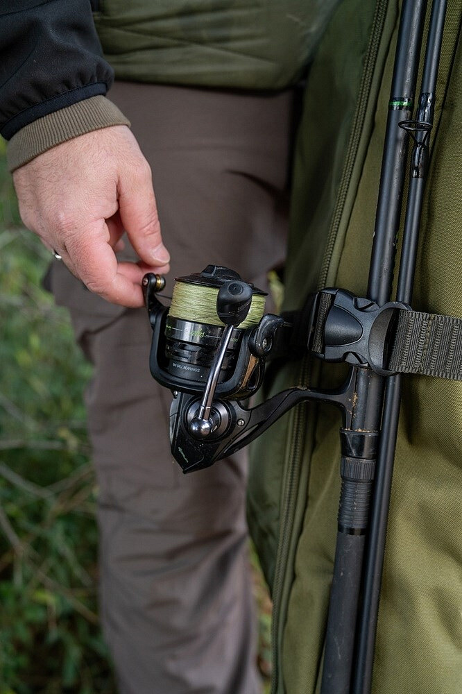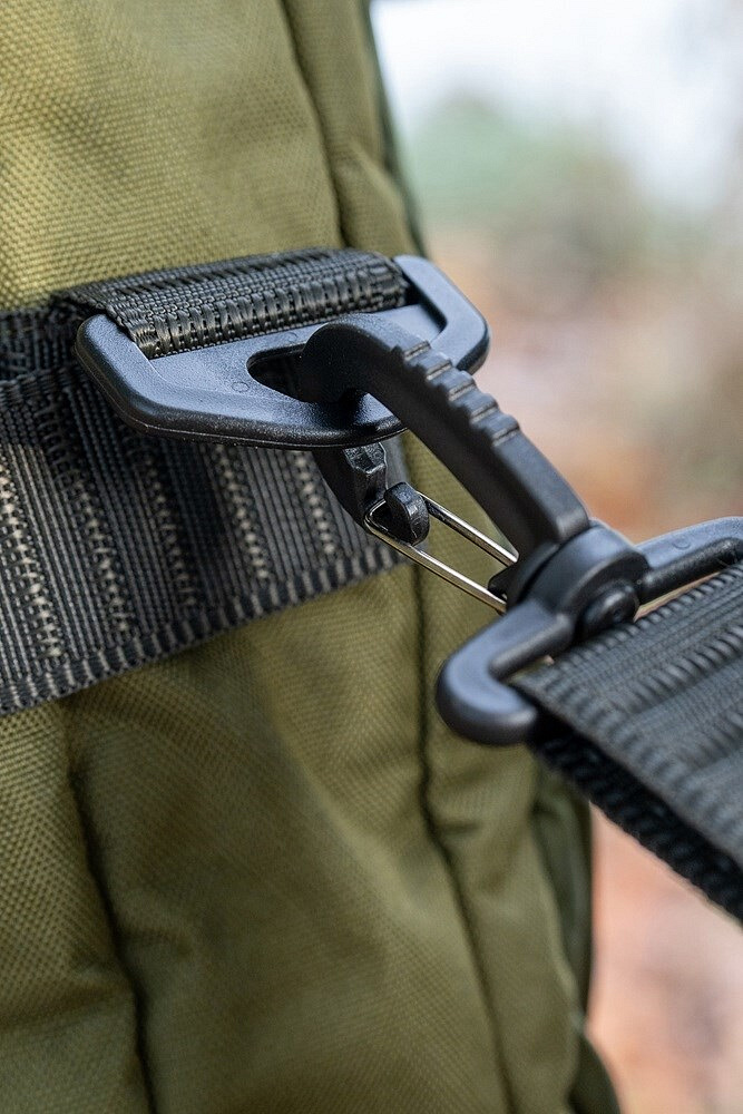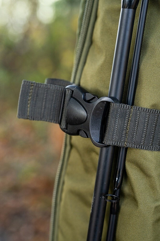 Přihrádka na pruty se odklápí od zadní přihrádky na přístřešek a poskytuje všechny výhody toulce s dodatečnou ochranou prutů. Má velkoryse polstrovaný prostor navržený pro pohodlné uložení navázaných prutů a navijáků a větší zadní přihrádku, do které se vejdou všechny přístřešky a deštníky Korum. Je také vybaven jednoduchou vnější kapsou na podběrákové hlavy a rukojeti nebo vidličky. K dispozici je také vnější toulec a popruh, pro mokré předměty, jako jsou přístřešky, stojany a pdoběrákové hlavy. Doplněno odnímatelným nastavitelným polstrovaným ramenním popruhem pro pohodlnou přepravu.