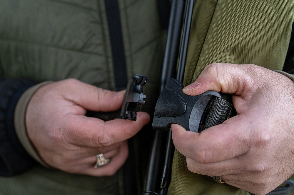 Nový inovativní způsob přenášení navázaných prutů a navijáků spolu s přístřešky, deštníky a vidličkami.