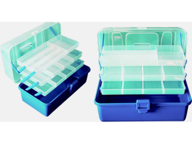 Nabídka plastových krabiček a kufříků představuje ucelený sortiment osvědčených a stále žádaných modelů. Zajímavé jsou dvou a třípatrové kufříky, vyrobené z vysoce odolného plastu. V zavřeném stavu udrží stojícího dospělého člověka. Za vynikající ceny vám nabízíme i krabičky na drobné příslušenství, háčky, umělé mušky atd. Řada modelů z naší nabídky krabiček přináší drobné inovace oproti běžně nabízeným typům na trhu. Tyto drobné úpravy jsou vedeny snahou maximálně přizpůsobit i toto základní příslušenství praktickým požadavkům rybářů. Všechny krabičky jsou vyrobeny z plastové hmoty s příměsí silikonu. Umožňují proto bezproblémové přechovávání agresivních gumových twisterů a podobných nástrah.