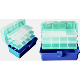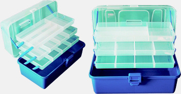 Nabídka plastových krabiček a kufříků představuje ucelený sortiment osvědčených a stále žádaných modelů. Zajímavé jsou dvou a třípatrové kufříky, vyrobené z vysoce odolného plastu. V zavřeném stavu udrží stojícího dospělého člověka. Za vynikající ceny vám nabízíme i krabičky na drobné příslušenství, háčky, umělé mušky atd. Řada modelů z naší nabídky krabiček přináší drobné inovace oproti běžně nabízeným typům na trhu. Tyto drobné úpravy jsou vedeny snahou maximálně přizpůsobit i toto základní příslušenství praktickým požadavkům rybářů. Všechny krabičky jsou vyrobeny z plastové hmoty s příměsí silikonu. Umožňují proto bezproblémové přechovávání agresivních gumových twisterů a podobných nástrah.