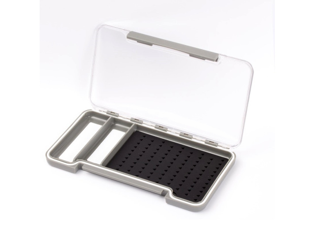 Odolná muškařská krabička s ultra pevným uzavíráním, s černou silikonovou pěnou a transparentním víkem nabízí bezpečnou volbu pro vaše mušky. Muškařská krabička ve standartním rozměru, kompaktní a výborně se hodí na uskladnění vaších mušek. Její výhodou je transparentní víko, které nám dává absolutní přehled nad uspořádáním jednotlivých mušek. Vyplň krabičky je z černé silikonové pěny a díky rychlému a bezpečnému vodě odolnému uzávěru jsou maximálně v bezpečí. Navíc krabička obsahuje dvě magnetická políčka pro upevnění hlaviček pro dodatečné doplnění váhy nebo pro suché mušky. Na krabičce je také natištěno mezinárodní měřítko háčků pro přesnou délku háčku.