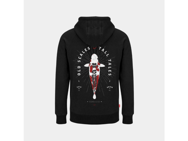 Materiál je 320 g/m² brushed back fabric, detaily tvoří tkaný boční štítek a barevně sladěné konce šňůr a střih je unisex, s kapucí přes hlavu, takže mikina nabízí pohodlné a univerzální nošení pro široké spektrum postav. Díky kombinaci oblíbeného designu Tall Tales, klokaní kapsy a luxusní tkaniny získáte kvalitní mikinu, která je připravená na každodenní použití i rybářské dobrodružství.