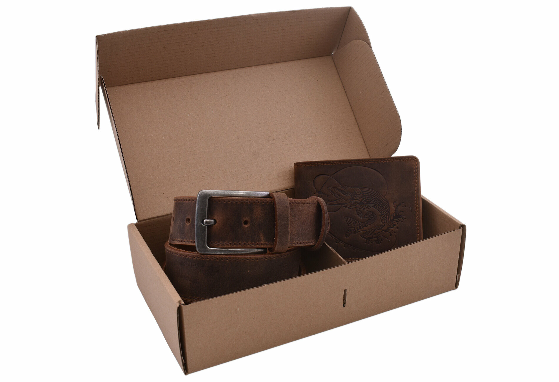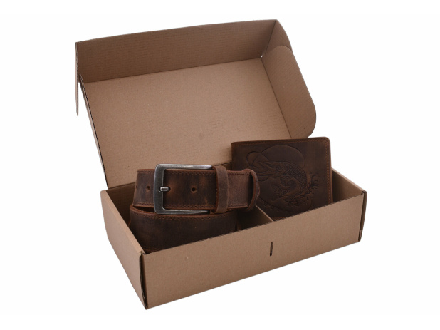 MERCUCIO - Set kožený opasek a kožená peněženka - vzor Štika prut