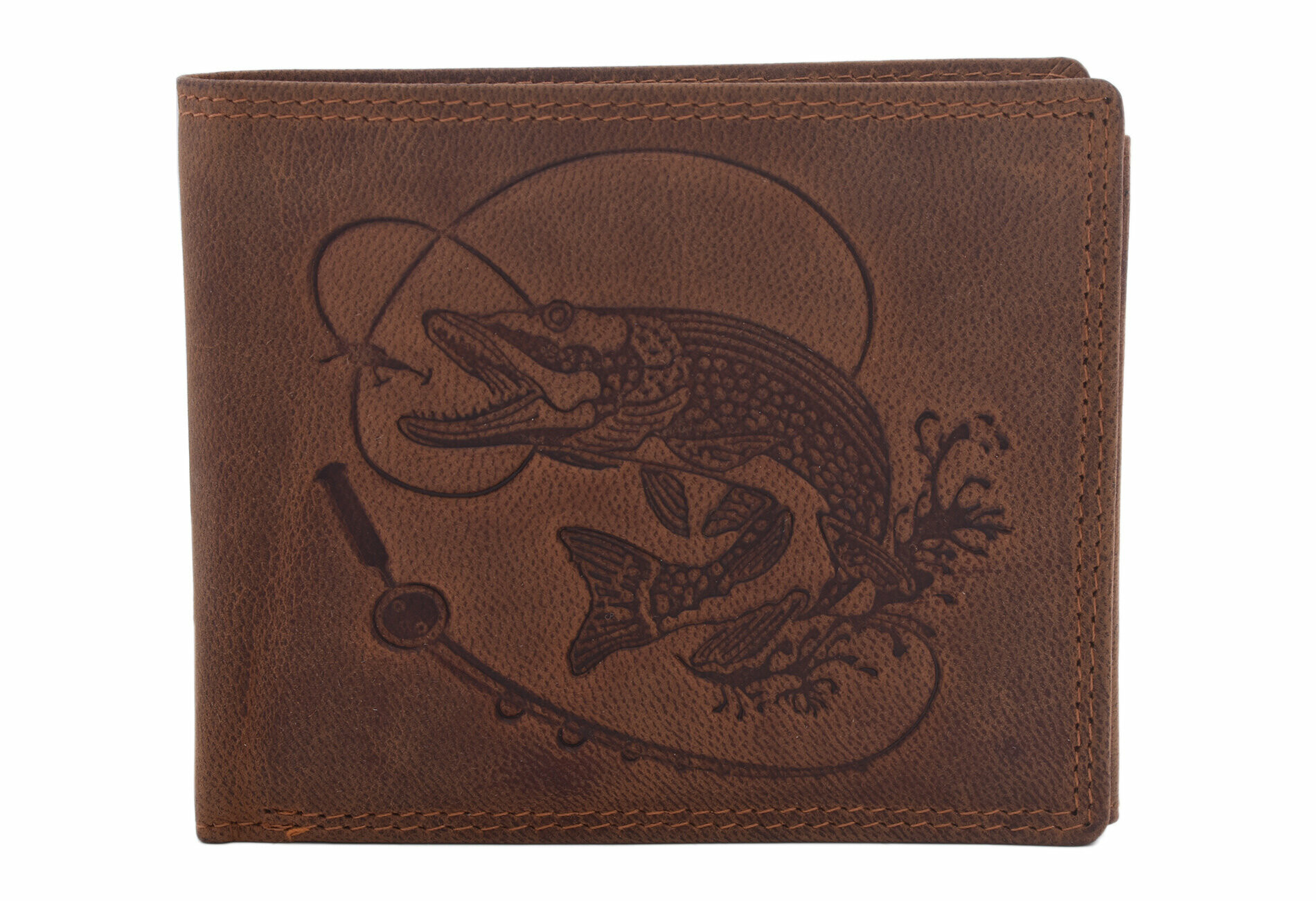 Šikovný dárkový set pro rybáře se dvěma praktickými koženými doplňky. Produkty jsou vyrobeny z tmavé broušené kůže s elegantním prošitím. Peněženka má vypálený vzor hlavy kapra.