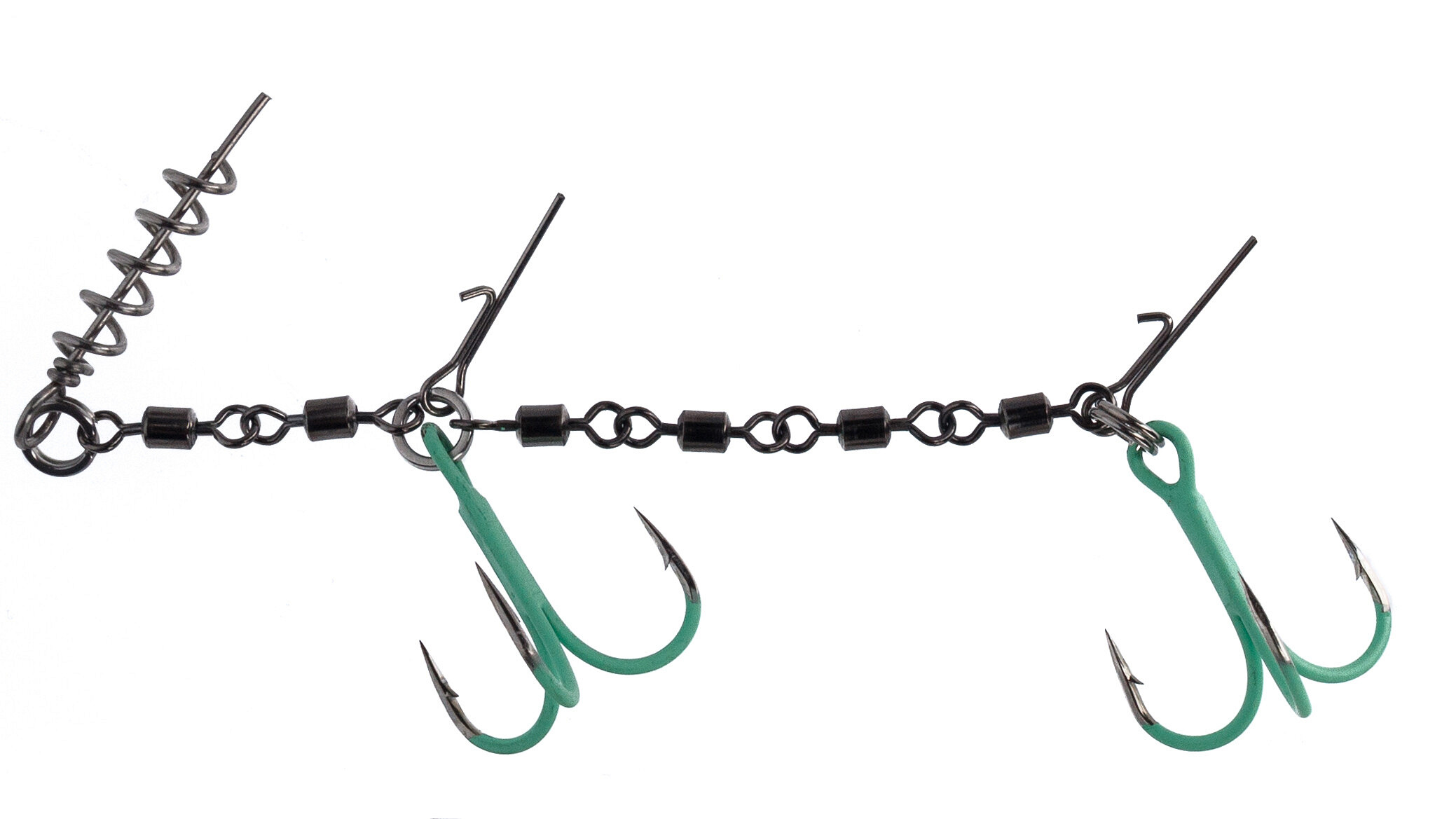 Moderní stingery s vrutem a piny. Vyrobeno z odolných obratlíků, které poskytují velmi silné a stabilní spojení. Trojháčky potažené fluo-povrchovou úpravou představují další výhodu, která také zvyšuje atraktivitu nástrahy.