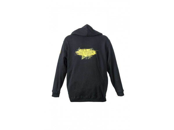 Teplá mikina s kapucí a přední kapsou ze 100% bavlny s atraktivními aplikacemi na zádech, na hrudi a na rukávu.