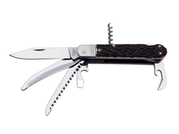 Lovecký nůž FIXIR je vybaven čepelí z velmi kvalitní nerezové oceli 440A o tvrdosti 54-57 HRc. Čepel loveckého nože FIXIR má kónický výbrus, což umožňuje nejen lepší řezivost, ale i údržbu. Tento typ loveckého nože FIXIR je také vybaven kvalitní pilkou s dvěma řadami zubů. Dále je tento lovecký nůž FIXIR vybaven vývrtkou, páráčkem, otvírákem na konzevy a otvírákem na láhve, který lze použít i jako plochý šroubovák či k odstraňování izolace. Lovecký nůž FIXIR je vybaven hřbetní pojistkou backlock, pro větší bezpečnost při práci s nožem. Střenky loveckého zavíracího nože FIXIR jsou vyrobeny z velmi kvalitní imitace parohu.Lovecký nůž FIXIR je dodáván včetně papírové krabičky, kožené pouzdro není součástí balení.