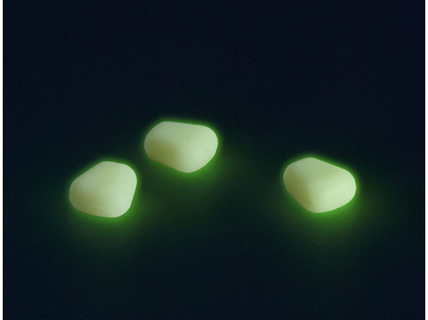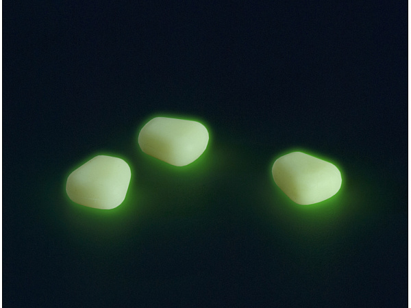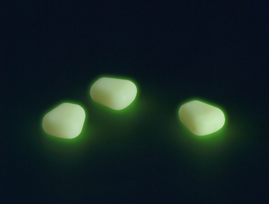 Luminiscenční, plovoucí imitace kukuřičných zrnek, která po nasvícení umělým zdrojem světla září zelenou barvou.