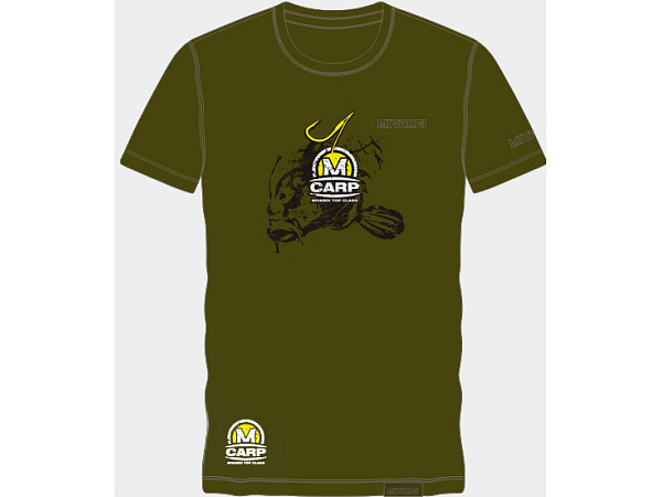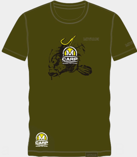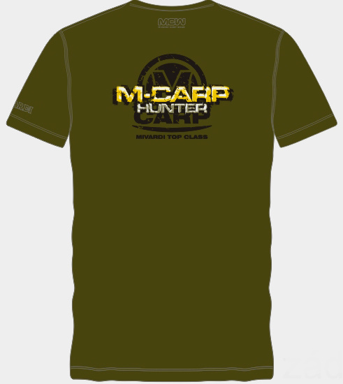 Luxusní bavlněné tričko s lemováním okolo krku a decentními logy Mivardi a MCW (Mivardi Carp Wear) a moderními potisky na hrudi a zádech.