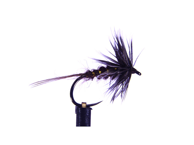 Nenápadná mokrá muška se zlatým koružkováním.