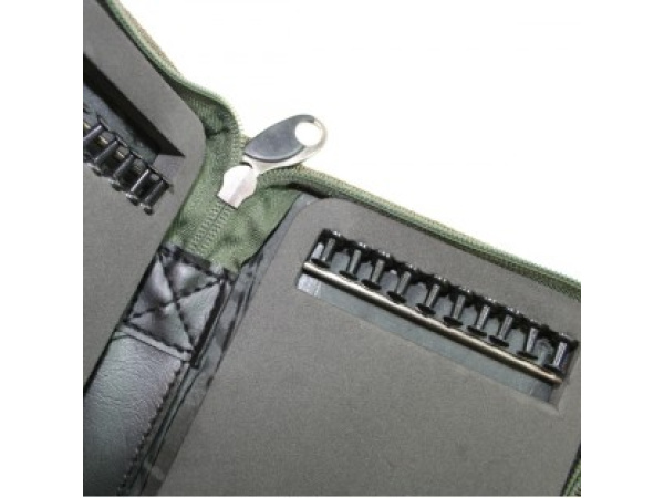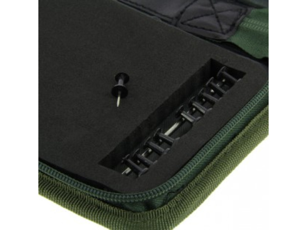 Penálový zásobník až na 20 ks koncových montáží. Je vyroben z vysoce kvalitního 600D nylonu a osazen zipy, které mají dlouhou životnost. Uvnitř je silná pěnová výplň. dodáváno s upevňovacími špendlíky. rozměry: 29 x 14 x 4 cm