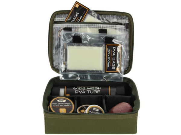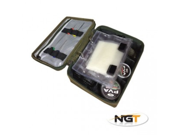 Další unikátní produkt designovaný pro značku NGT. Jedná se o tašku či spíše malý kufřík určený pro PVA materiály, ale i pro jakékoliv jiné rybářské potřeby. Je pevná, robustní a perfektně drží tvar. Na víku je pevná průhledná kapsa a několik gumových popruhů na nůžky či jiné potřeby. Vnitřní uspořádání lze upravit. Rozměry: 27 x 20 x 9cm