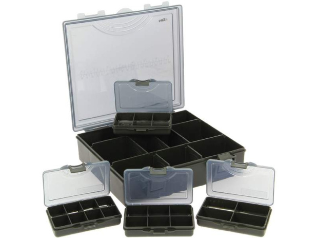 Nová vylepšená verze rybářského boxu ideální nejen pro kapraře. Box je vyrobený z vysoce kvalitního tvrzeného plastu v tmavě zelené barvě a víko v kouřově černé barvě. Box má velice spolehlivý zacvakávací mechanizmus zavírání díky kterému vám z boxu nikdy nic nevypadne. Součástí jsou odjímatelné přihádky a 4 krabičky na bižuterii. Obsah boxu: 1x velký box 23x19,5x6 cm 1x krabička 3 přihrádky 1x krabička 4 přihrádky 1x krabička 6 přihrádek 1x krabička 8 přihrádek