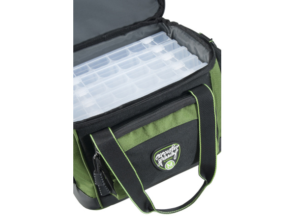 Prostorná taška na nástrahy a veškeré příslušenství pro lov na přívlač. Obsahuje 5 velkých krabiček na nástrahy. Velká kapsa ve víku a tři postranní kapsy umožňují přehledné uložení dalšího příslušenství. Popruh přes rameno s kvalitním polstrováním zaručuje pohodlné nošení.